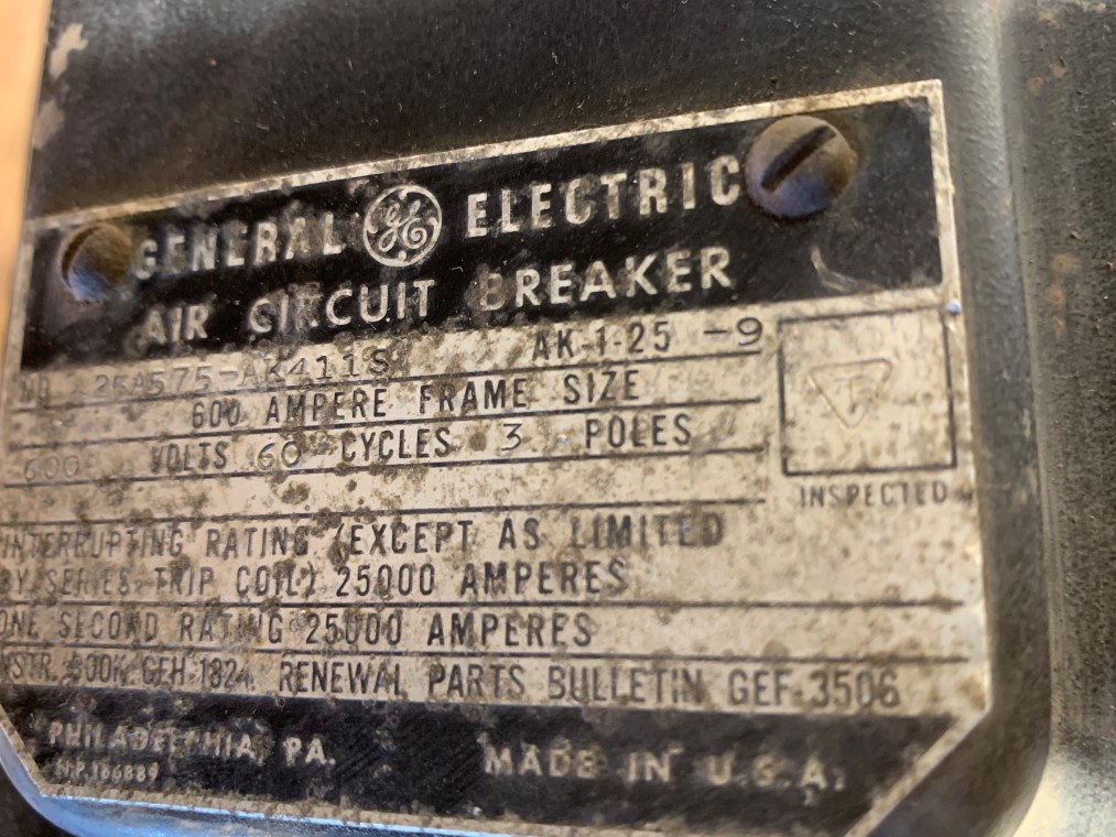 General Electric AK-1-25-9 Air Circuit Breaker 600A 600V MO/BI 600A Trip For Sale