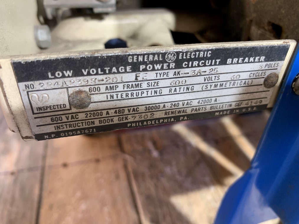 General Electric AK-3A-25 Air Circuit Breaker 600A 600V MO/DO Microversa Trip For Sale