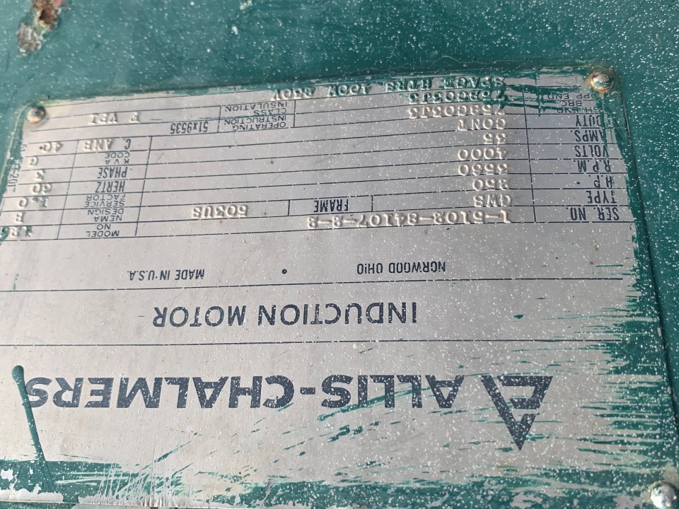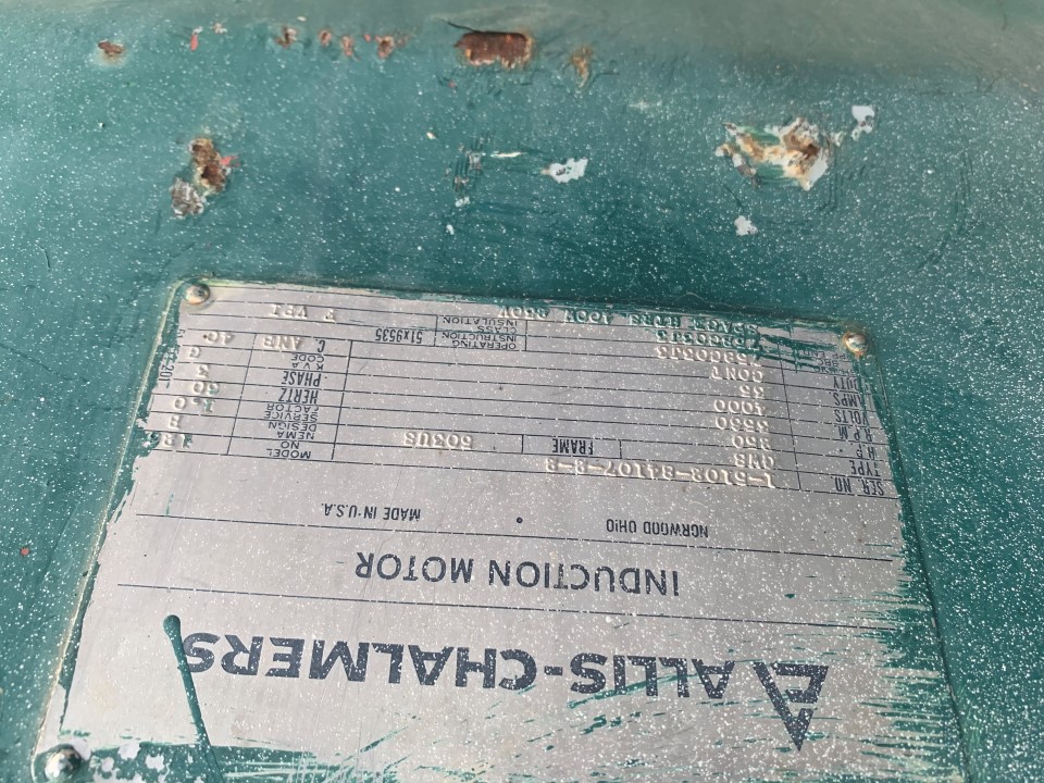 Used Allis-Chalmers 250 HP, 3600 RPM, 503US, 4000V, Electric Motor FOR SALE.