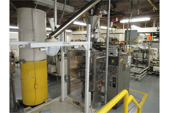 Bosch FF&S fin seal bagger 1, model SVB-3600, s/n 430, with AccuFillSpeedster servo auger powder filler with stainless product feed hopper, 240V, 3ph, 20A, programmable controllers control panel, nitrogen flow meter box, temp control, 3.875” or 11” forming tube, 115V, 1ph/60hz, 30A