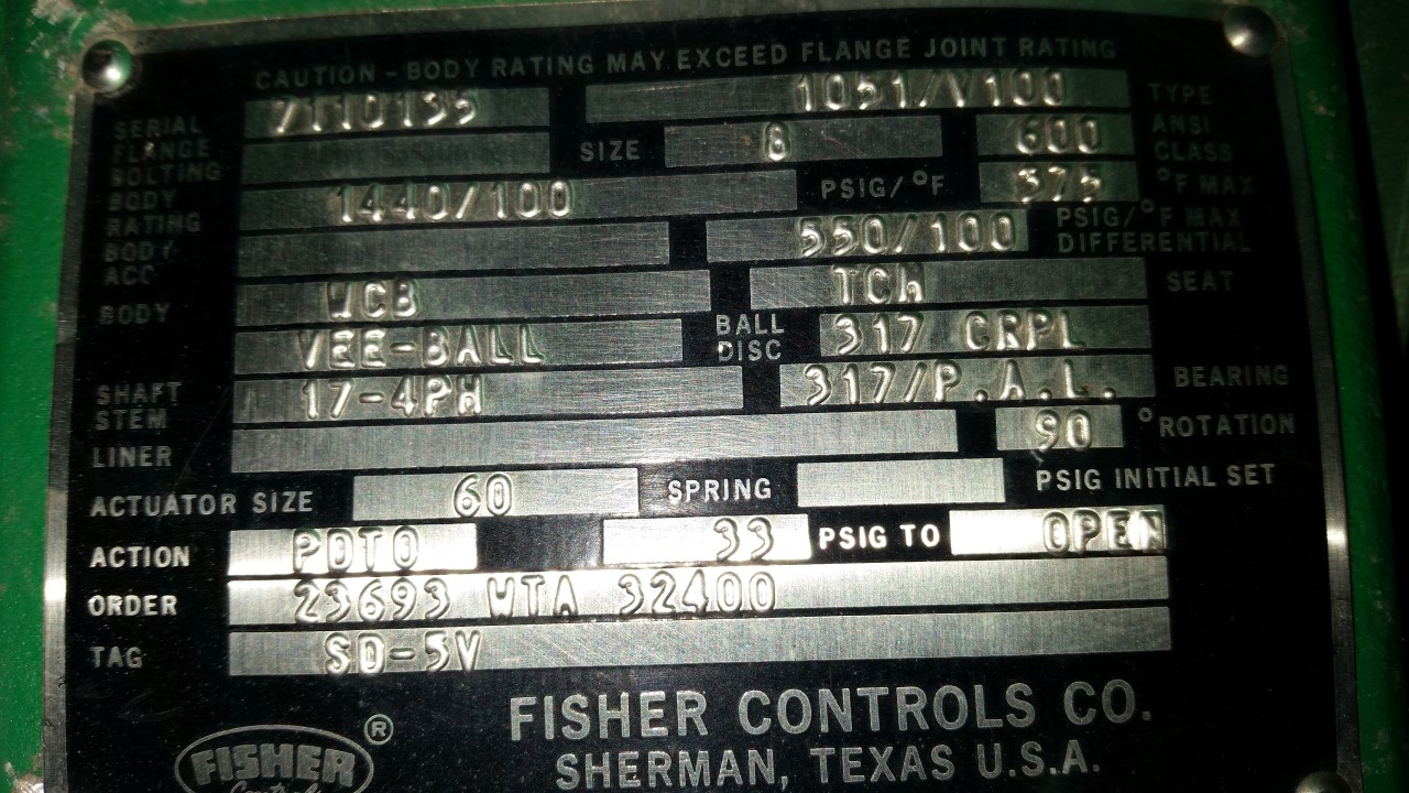 Fisher 8" 600 Class, Vee-Ball Control Valve