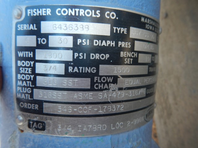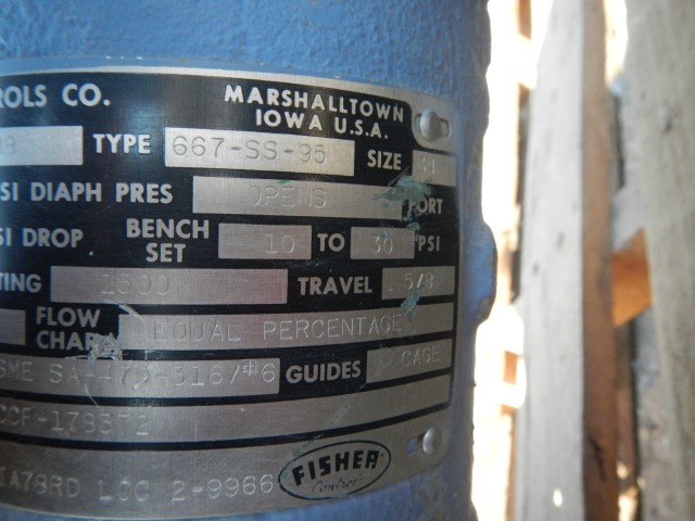 Comments: Fisher Type 667 SS 95, Differant Sizes for each Valve.
