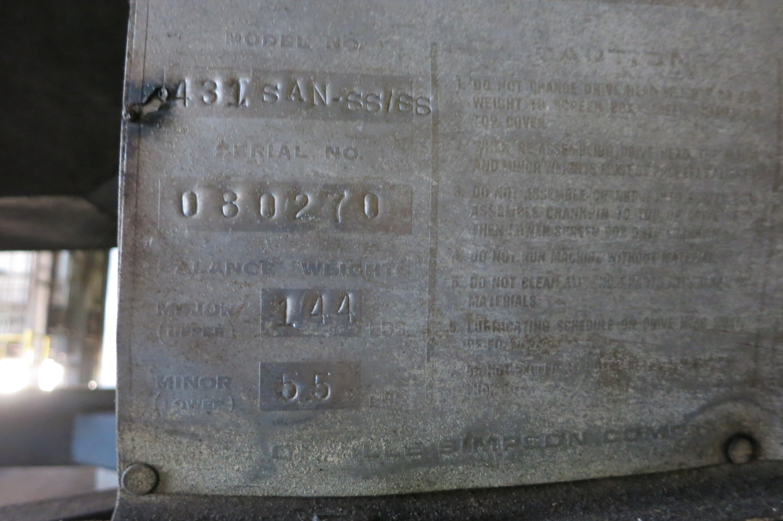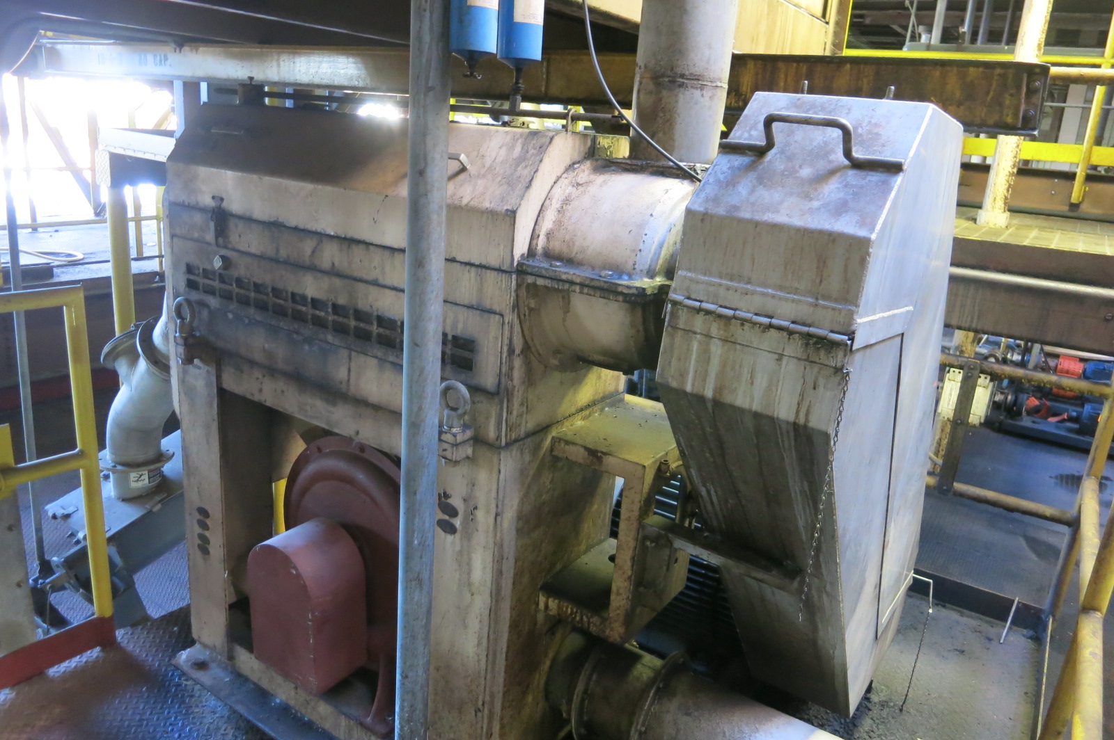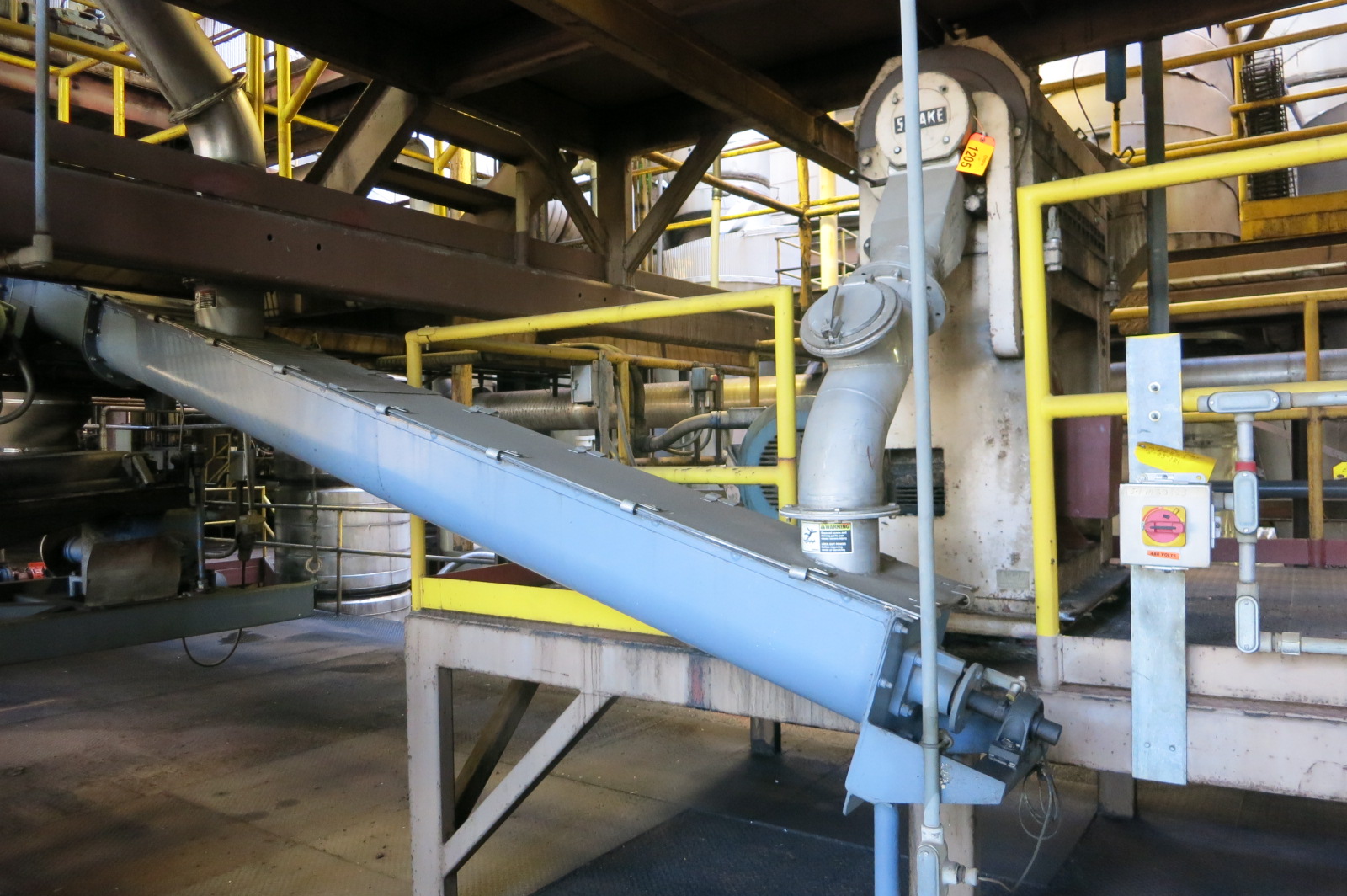 Satake rice sizer, 50 hp rice sizer, with screw feed conveyor to Rotex screen separator model 431 SAN-s/s-s/s, s/n 080270, balance weight @ 144 major/ 55lbs minor