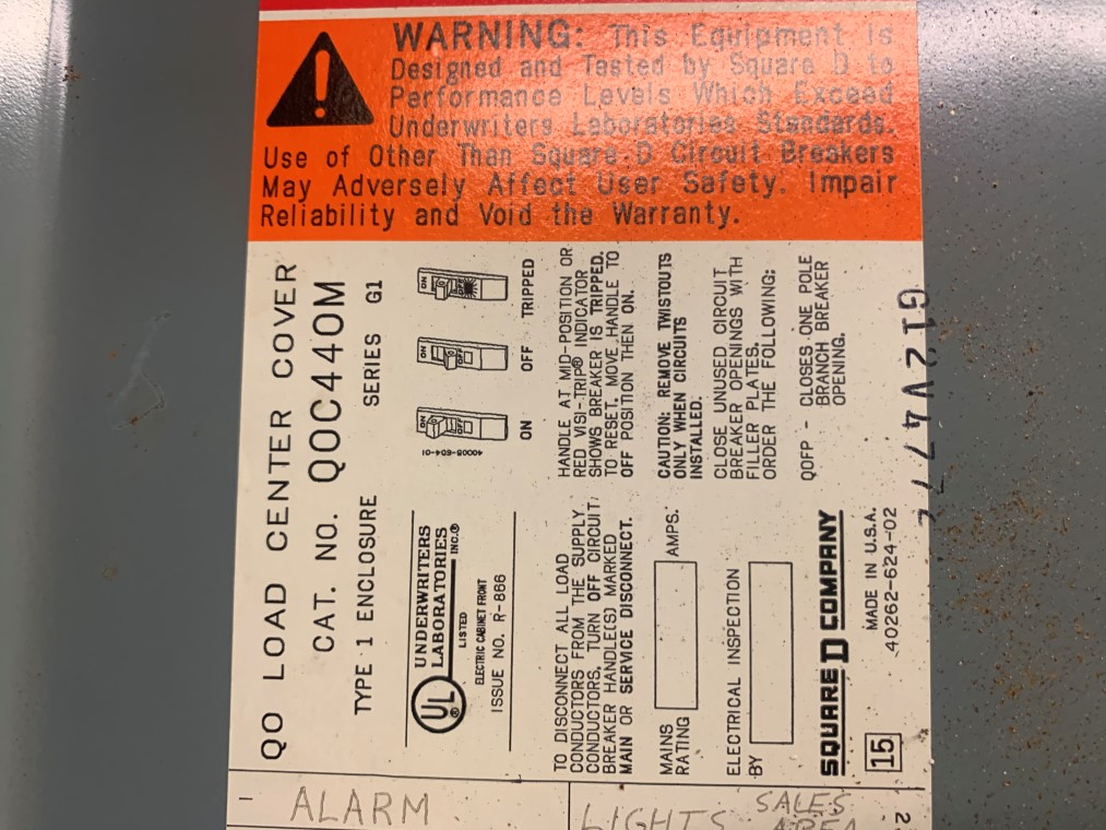 Used Square D Breaker Panel QOC44OM Ser G1, 200A Main, Dry Type 1 Encl For Sale